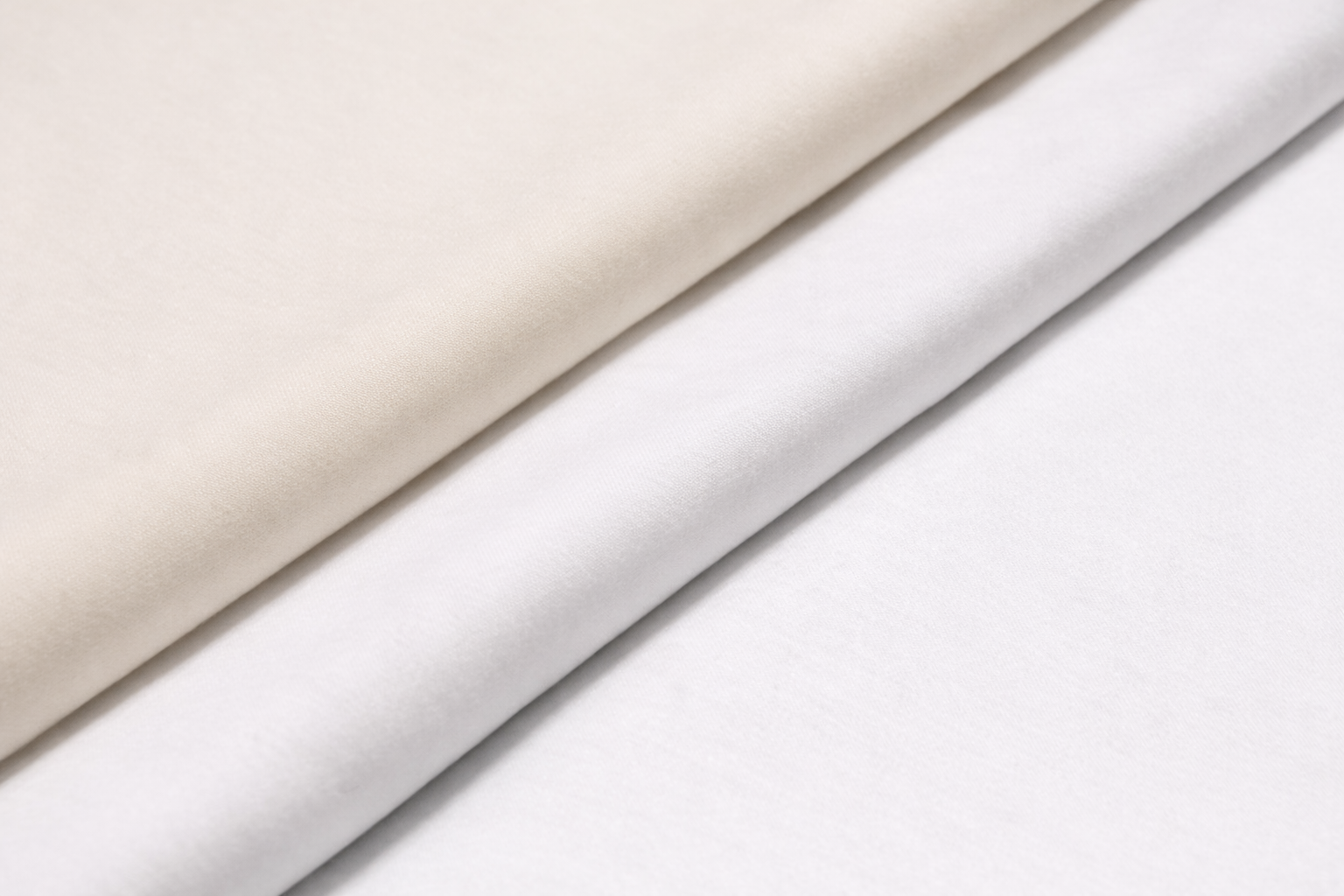 درجتان متقاربتان من الأبيض قد تبدوان متشابهتين، بينما الفرق الحقيقي يكمن في النسج وسلوك القماش. الأقمشة القطنية الخفيفة تعكس البياض بحدة أكبر وتمنح سطحًا ناعمًا، في حين أن الأنسجة الأثقل أو المخلوطة تضيف سقوطًا (Fall) أكثر توازنًا وانسيابية على الجسم.