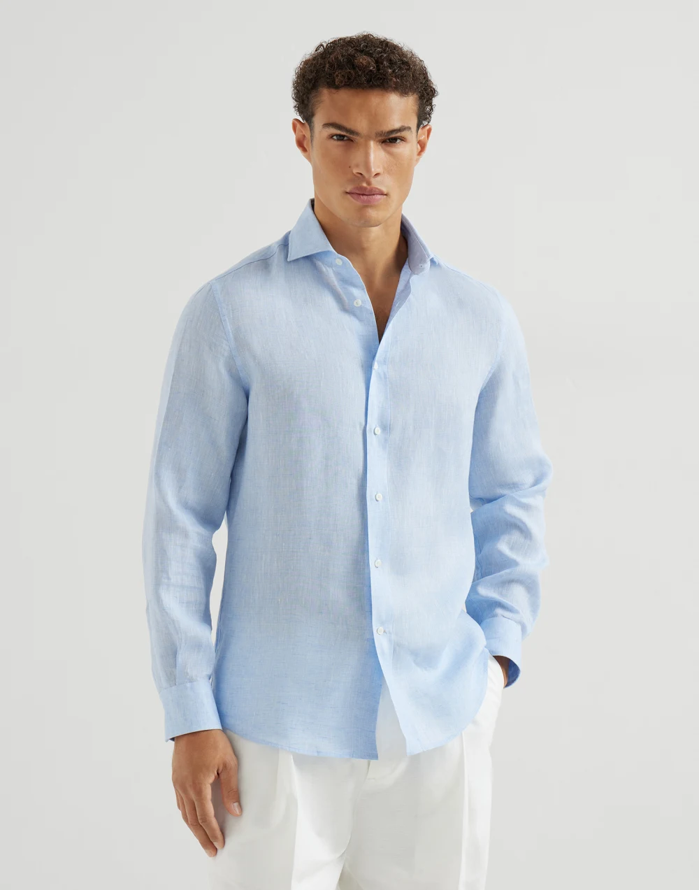 تُعرف دار Loro Piana الإيطالية باستخدام أفخر الأقمشة الطبيعية، وقمصان الكتّان لديها تعكس هذا الإرث بوضوح. يتميز القميص بنسيج خفيف وناعم على البشرة، مع قصّة متقنة تمنحه مظهرًا أنيقًا يناسب الإطلالات الراقية في المناسبات النهارية.