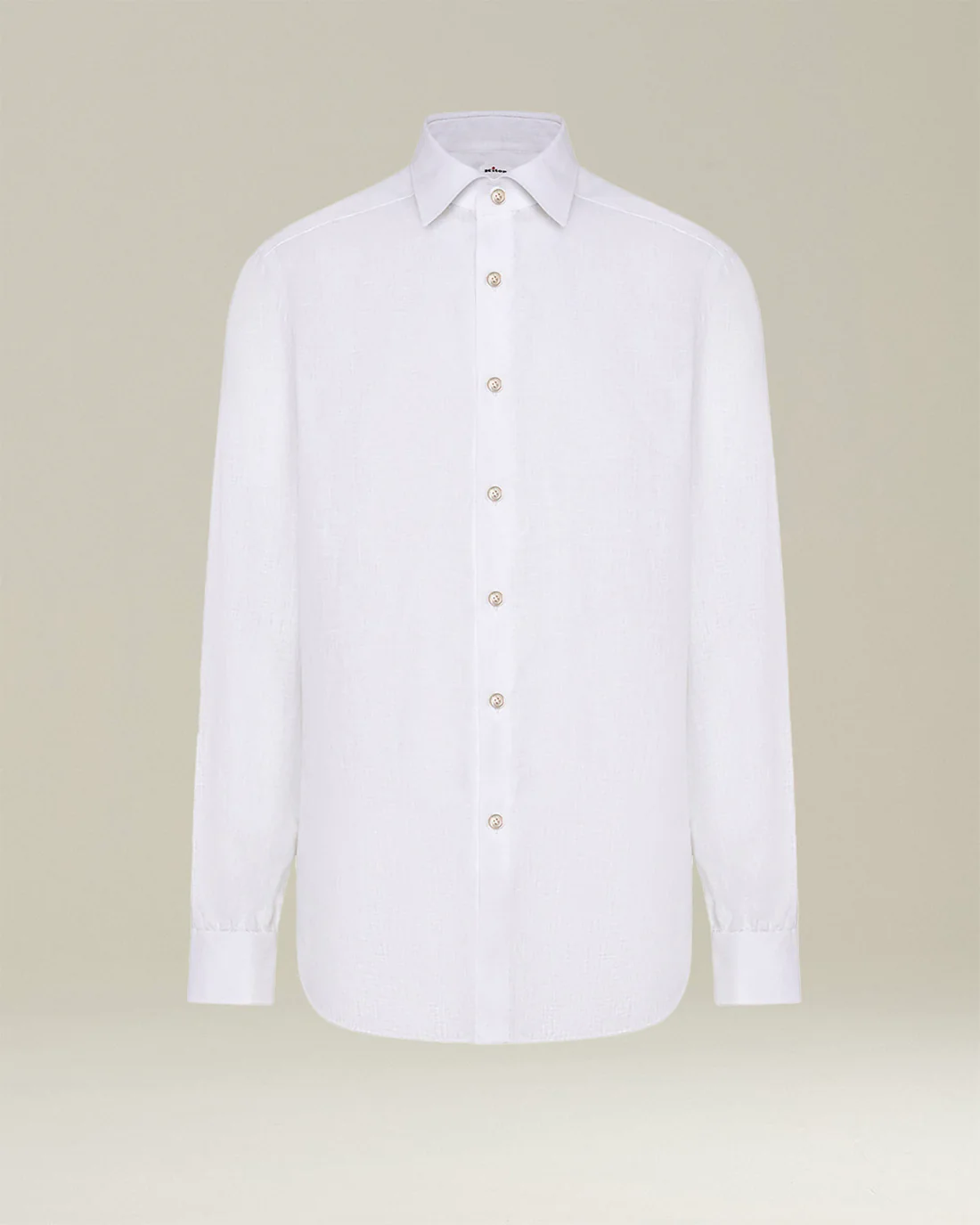 إذا كنت تبحث عن قميص كتان بلمسة أكثر فخامة، فعلامة Kiton الإيطالية تقدم قراءة أكثر فخامة لقميص الكتّان، حيث تظهر براعة الدار في القصّات المتقنة والمواد عالية الجودة. ويأتي القميص بقصّة أقرب إلى الجسم، ما يمنحه طابعًا أكثر أناقة، ويمكن تنسيقه بسهولة مع سراويل قماشية خفيفة أو حتى مع البدلات الصيفية.
