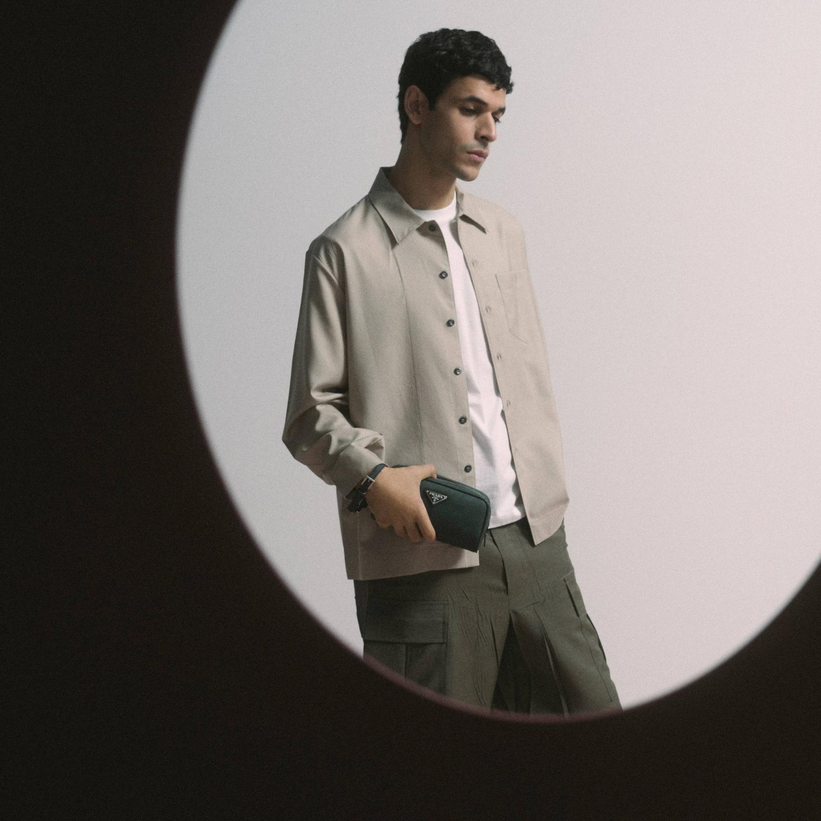 وتستكمل Prada تميّزها بقميص أنيق يمكن ارتداؤه مفتوحًا فوق تيشيرت قطني، ينبض بالرقة بفضل جيبه الوحيد المصوغ بانسجام مع التصميم ككل، ويلائم الرجل الذي يتطلّع إلى أسلوب جاذبية متحرّرة من القيود.