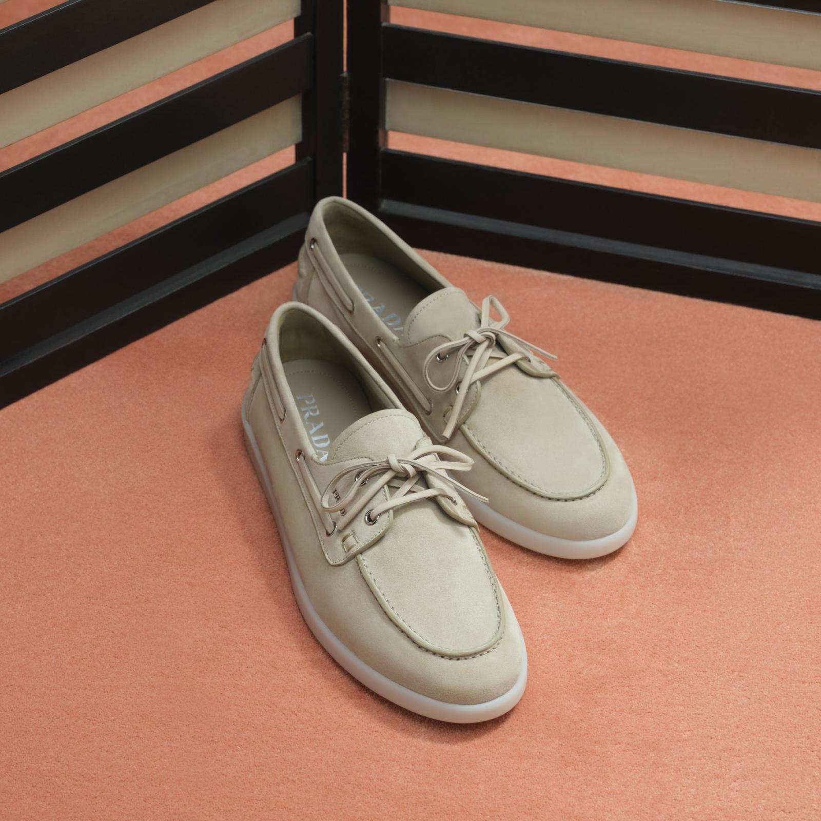 ولأن رجل Prada لا يتنازل أبدًا عن راحته وسحره في هذا الشهر المبارك، خصته العلامة أيضًا بتشكيلة رائعة من الأحذية العصرية، التي تتألق برقي موادها ودقة تفاصيلها، وجوهر الجاذبية، التي يحرص عليها ويتشبث بها.