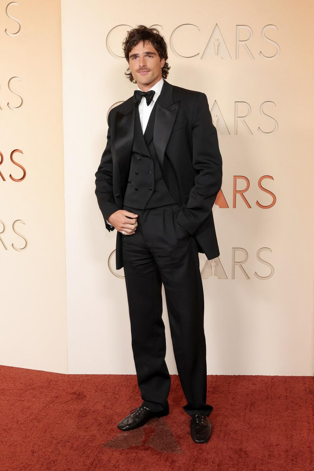 أطل جاكوب إلوردي Jacob Elordi في حفل أوسكار 2026 الذي ترشح فيه لأول مرة كأفضل ممثل، بإطلالة تميل إلى الأناقة الرومانسية الكلاسيكية، مرتدياً بدلة سوداء أنيقة من ثلاث قطع من بوتيغا فينيتا Bottega Veneta.
