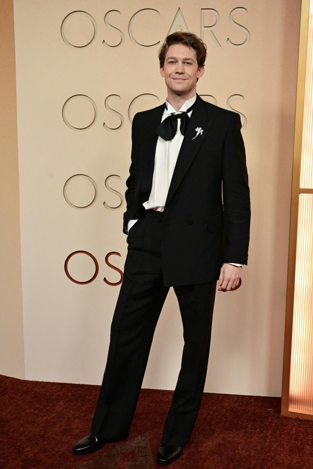 ظهر جو ألوين Joe Alwyn بإطلالة كاملة من تصميم Valentino، حيث ارتدى بدلة بقصة مربعة وسروال واسع قليلاً يعكس صيحات الخياطة المعاصرة وبربطة عنق مميزة.