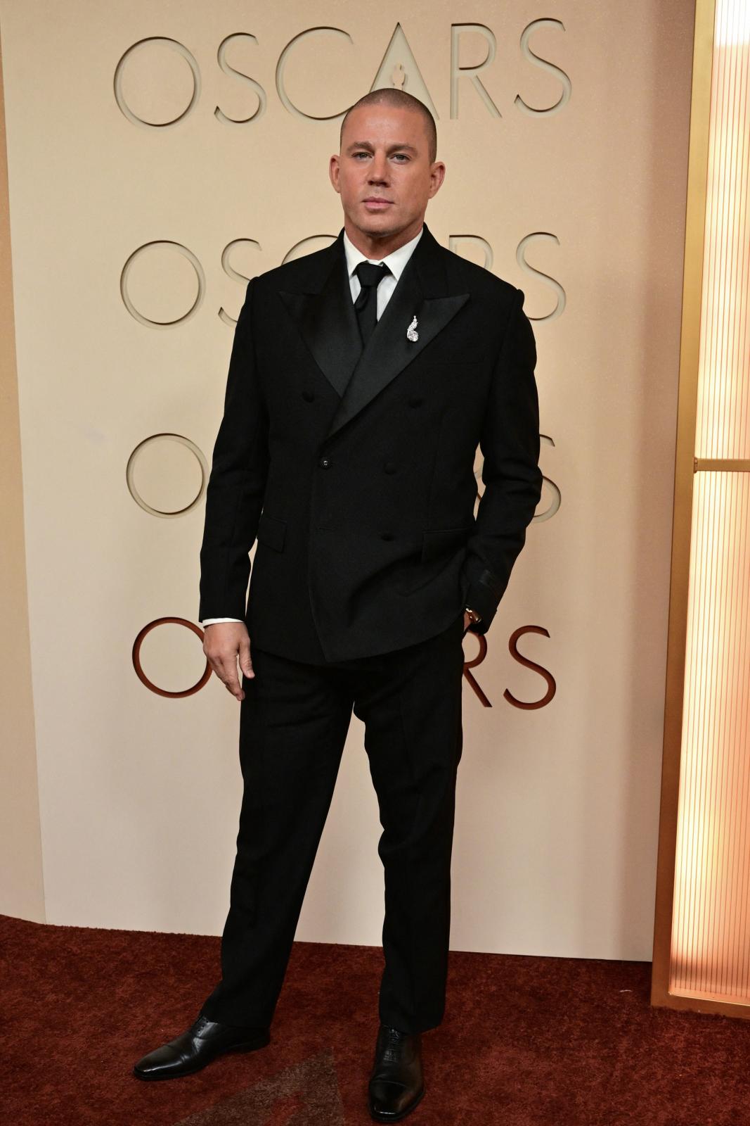 ظهر تاتوم على السجادة الحمراء مرتديًا بدلة توكسيدو سوداء من تصميم دار Versace، نسقها مع قميص أبيض وربطة عنق سوداء، وأكمل الإطلالة بدبوس ماسي من Tiffany & Co أضاف لمسة فاخرة إلى مظهره الكلاسيكي.