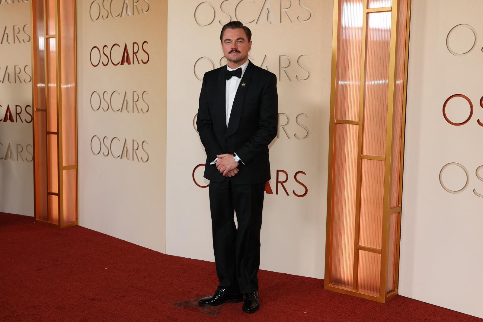 تألق ليوناردو دي كابريو Leonardo DiCaprio بإطلالة كلاسيكية أنيقة من تصميم دار Dior، حيث ارتدى بدلة توكسيدو سوداء مع قميص أبيض وربطة عنق سوداء.