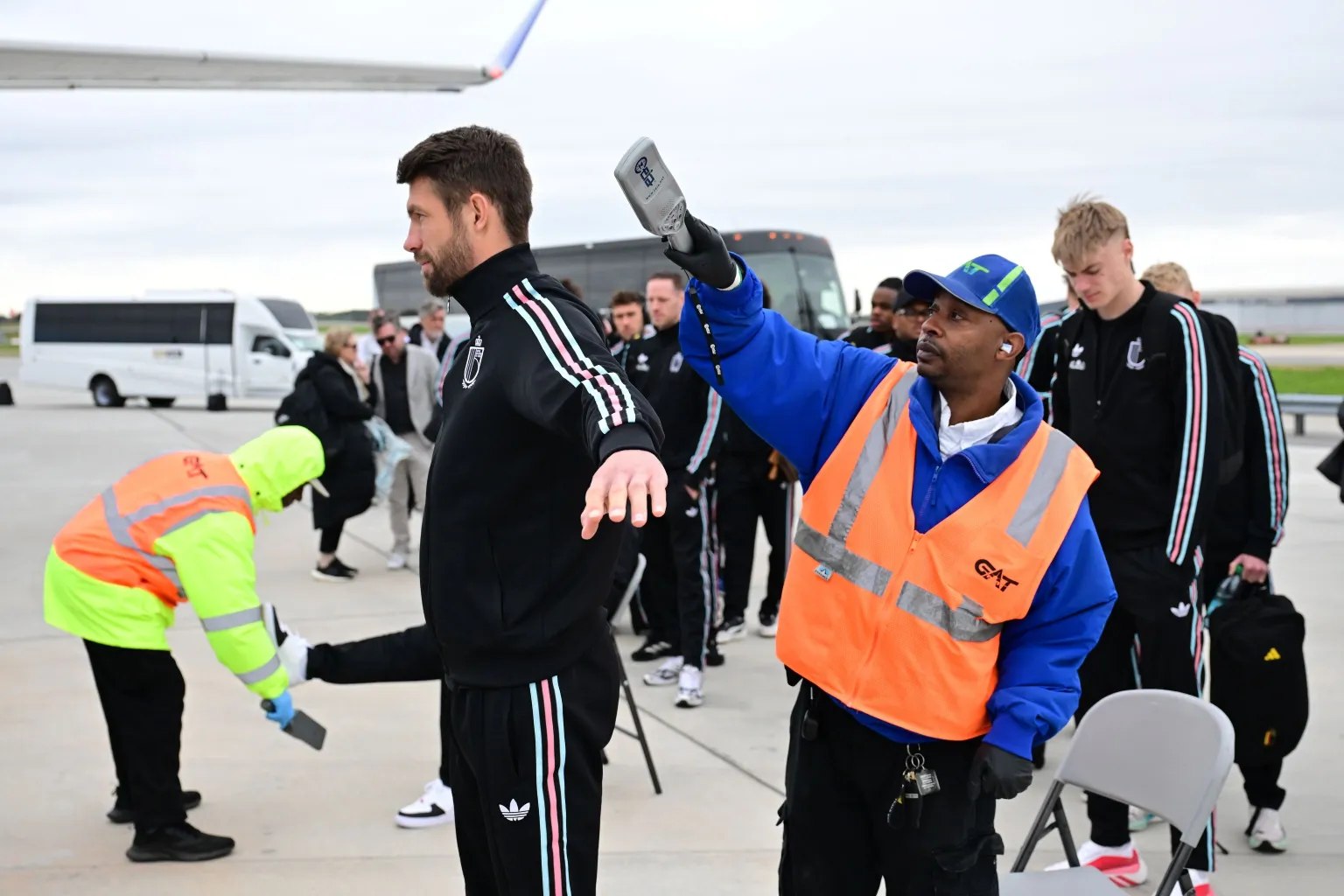 وتم تنفيذ التفتيش على المدرجات وعلى بُعد أمتار قليلة من الطائرة، وسط حضور عدد من المسافرين والمشجعين الذين تفاجأوا بالإجراءات المشددة، والتي جاءت ضمن استعدادات مشددة للبطولة، لضمان سلامة بعثة المنتخب البلجيكي بعد الانتصار الكبير على منتخب الولايات المتحدة.