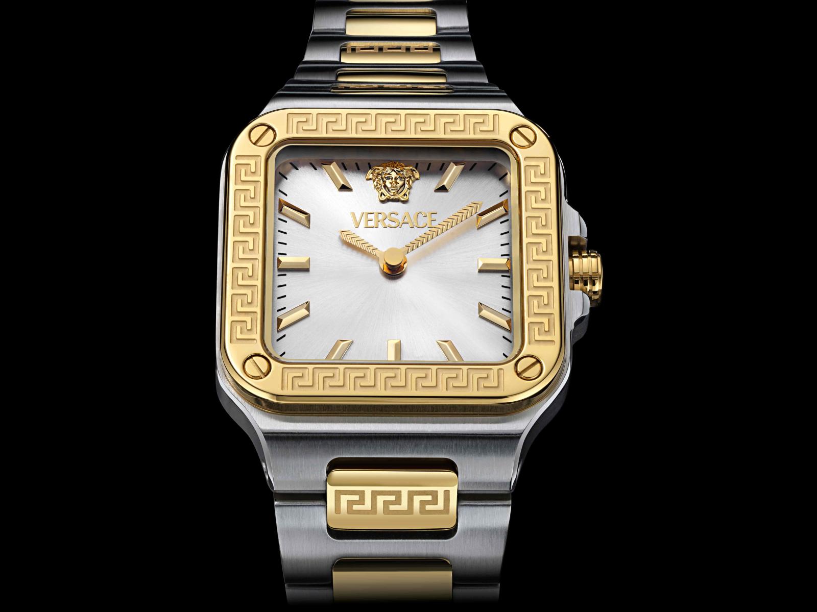 تجمع هذه الساعة بين الرصانة والجاذبية من خلال الزوايا الحادة والخطوط الانسيابية، إذ إن العلبة الفولاذية التي تؤويها تتخذ هيئة مربّعة وتقترن بقرص مصقول بالذهب الأصفر تبرز عليه زخارف غريكا الكلاسيكية المألوفة في أرقى ابتكارات فيرزاتشي، كما أن ميناءها يزدان بزخارف على نمط أشعة الشمس، بلون فضي ينسجم بأناقة مع شعار العلامة ورأس ميدوسا القابع عند مؤشر الساعة 12.