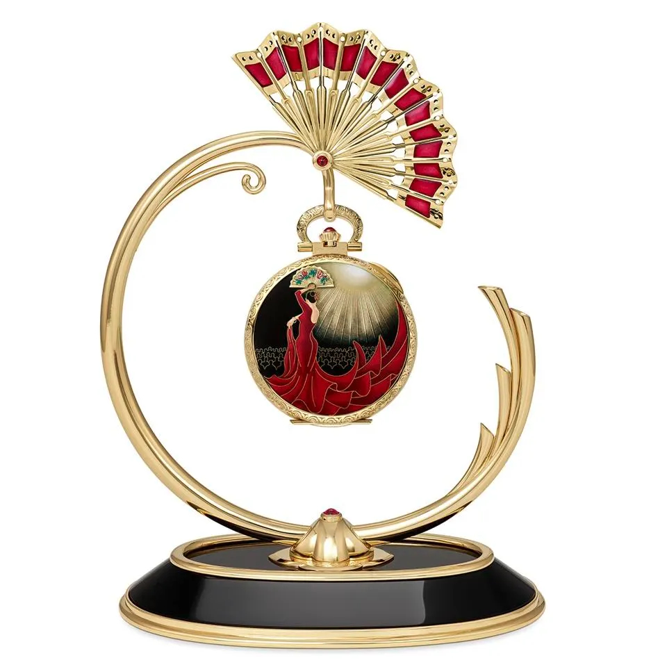 وترافق الساعة حامل من الذهب الأصفر مزيّن بمروحة من مينا البليك أجور، وقاعدة بيضاوية من الأوبسيديان الأسود، وسلسلة ذهبية تتدلى منها ميدالية منقوشة يدويًا على شكل مروحة، وتعمل الساعة بالآلية اليدوية كاليبر 17 مع ثوانٍ صغيرة.