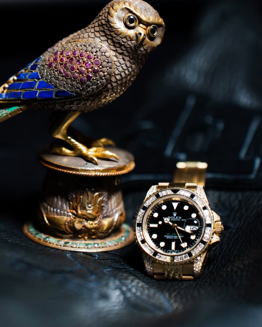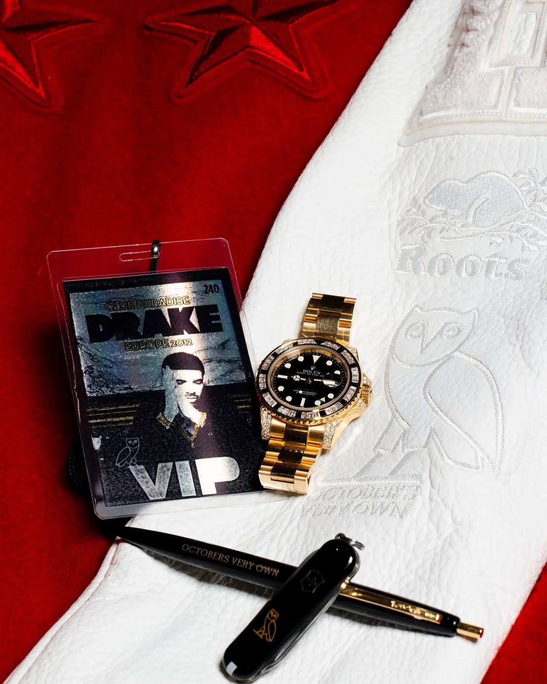 عرض تاجر الساعات إريك ويند، مؤسس متجر Wind Vintage المتخصص في بيع الساعات الفاخرة والنادرة، ساعة رولكس GMT-Master II استثنائية ارتداها المغني الكندي دريك على غلاف ألبومه الثاني "Take Care" الصادر عام 2011.