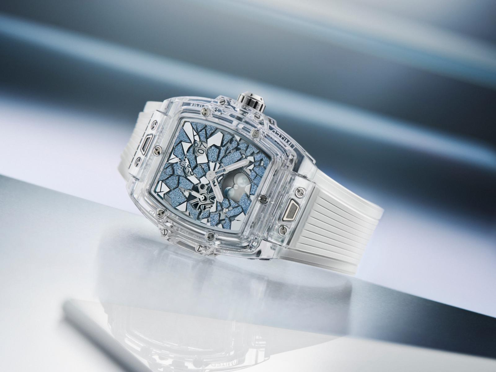 تمتلك دار هوبلو Hublot خبرة معتبرة في تطويع البلور الياقوتي، فمنذ عام 2016، توسّعت في استخدامه في علب ساعاتها حتى أصبح عنصرًا ثابتًا في إصداراتها. وقد حضر كالعادة في معرض ساعات وعجائب 2026، لكنه لم يحضر بالصورة المعتادة، إذ اقترن بمواد أخرى كالأوزميوم في وصفةٍ فريدة تُحيل إلى سعي هوبلو الدائم لكسر الحدود.