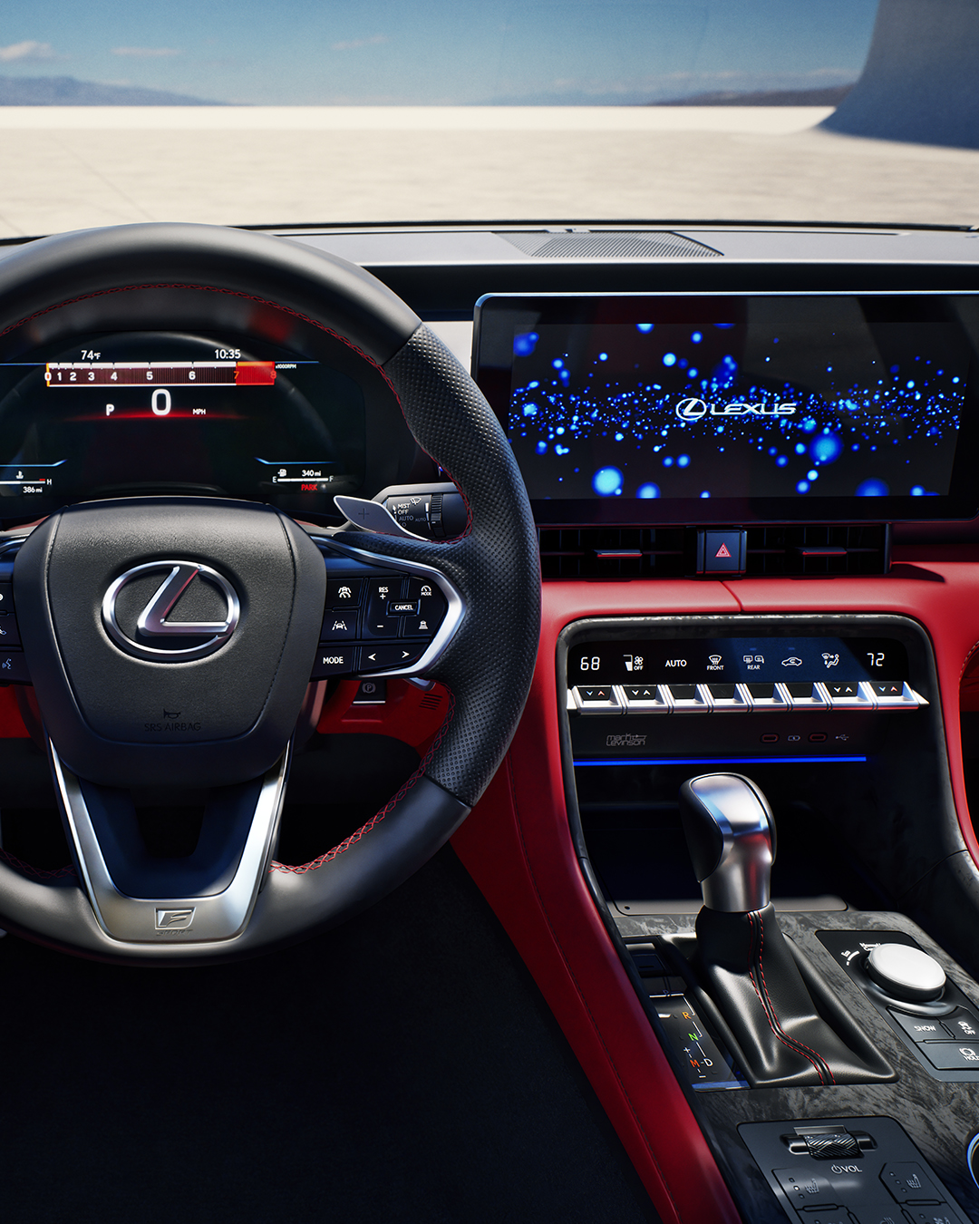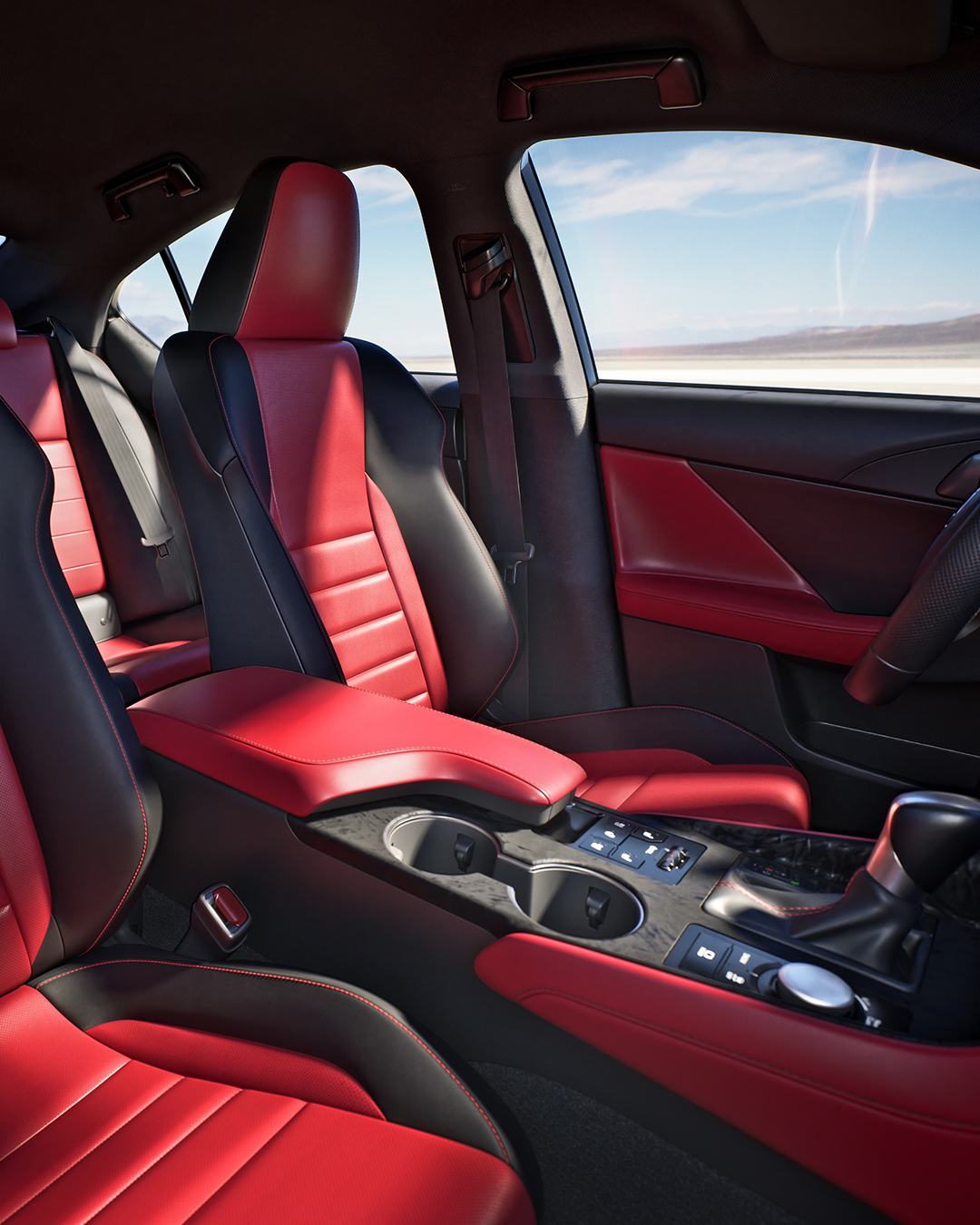 على أن هذا ليس كل ما أودعته لكزس في هذه المقصورة، فقد ضمّنتها زخارف مبتكرة من البامبو، وتحديدًا على وحدة التحكم العلوية ومحيط زر التشغيل، ما أضفى عليها طابعًا أنيقًا يتناغم مع جوهر سيارات السيدان الرياضية التي تنتجها. وكما استحدثت لونًا جديدًا يرتقي بخطوط السيارة الحادة، كذلك فعلت في المقصورة، إذ كستها بلون بديع باسم "برومنانس" Prominence، وهو لون أحمر زاه مستلهم من التوهجات الشمسية الساطعة.